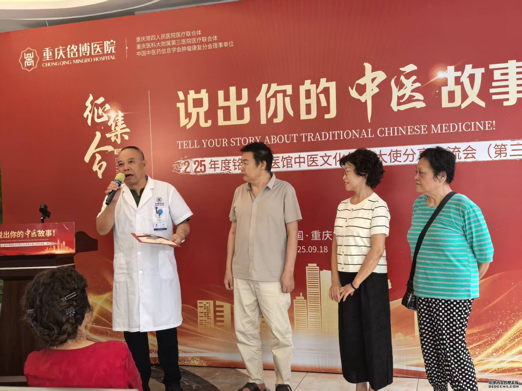 2025年9月18日上午9点,重庆两江江渝国医馆成功举办了“2025年度第三期中医文化传承大使分享交流会”。本次盛会以“见证改变的力量,共话中医康复之路”为主题,汇聚了知名中医专家、文化传承大使、康复患者及各界关注中医人士,一同分享了中医带来的健康转变,深入探讨了中医康复的智慧与未来。